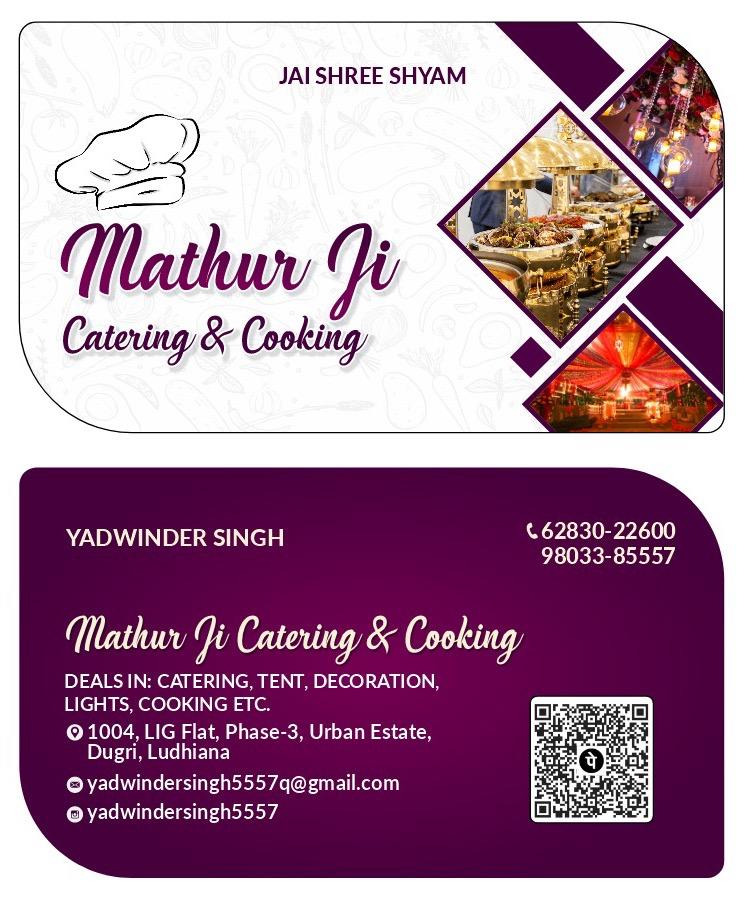 Mathur Ji Catering and Cooking in Ludhiana is dedicated to delivering quality catering and decoration services for weddings, parties, and special events. They offer a range of services including catering, tent setups, lighting, and elegant decorations, ensuring each event is beautifully arranged and well managed. With a strong focus on hygiene and taste, they prepare delicious dishes that suit every palate, bringing a delightful culinary experience to your celebrations. Their team pays close attention to detail, ensuring seamless execution from setup to service, creating a warm and welcoming atmosphere for your guests. Located at Urban Estate, Dugri, Ludhiana, Mathur Ji Catering and Cooking works closely with clients to understand their requirements, offering customised solutions that match budgets and preferences. They aim to make every event memorable, reflecting their commitment to quality and customer satisfaction, ensuring your special day is celebrated with flavours, elegance, and worry-free service.